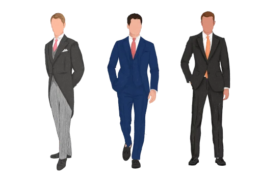 * Traje de dos o tres piezas de colores oscuros, como azul marino, gris o negro.